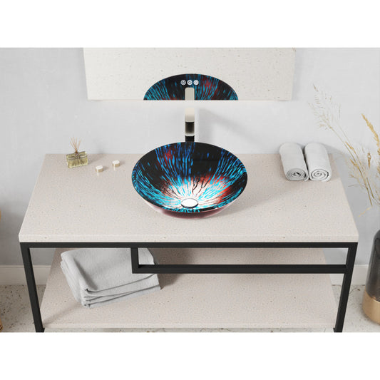 Belissima Round Glass Vessel Bathroom Sink with Stellar Burst Finish
