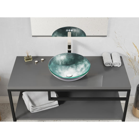 Belissima Round Glass Vessel Bathroom Sink with Stellar Grey Finish