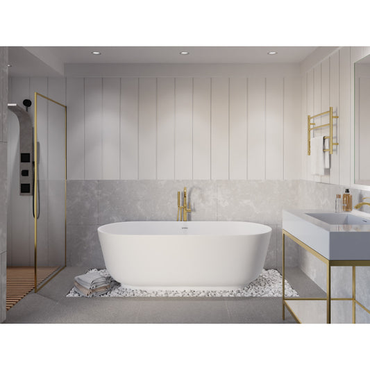 Bailey 59 in. Acrylic and Solid Surface Glossy Flatbottom Freestanding Soaking Bathtub in White