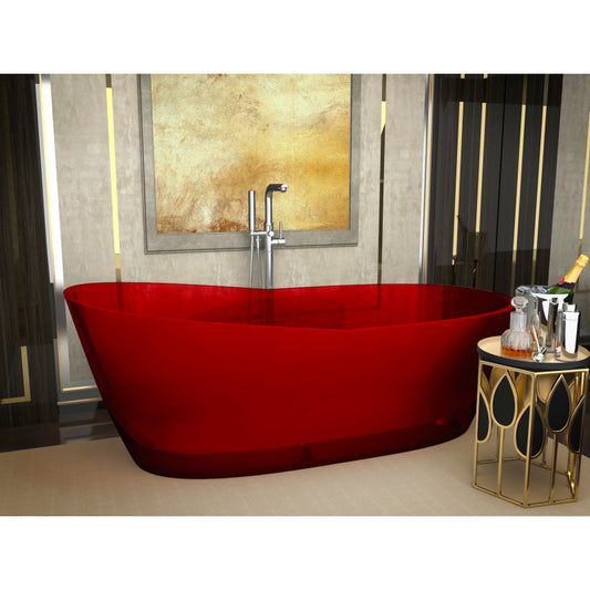 Ember 5.4 ft. Solid Surface Center Drain Freestanding Bathtub in Deep Red