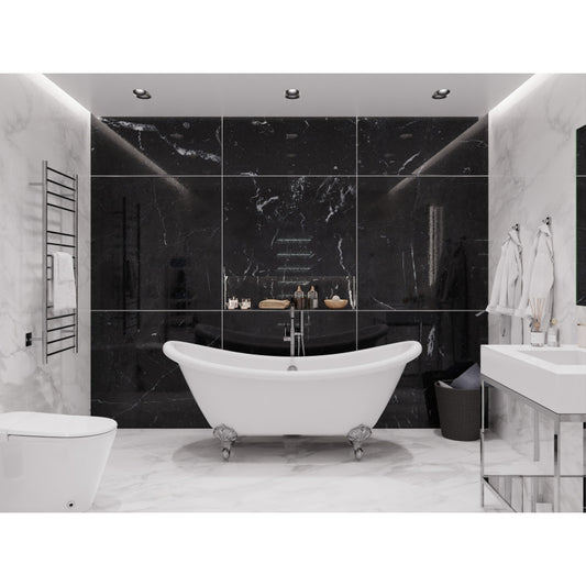Falco Series 70 in. x 29 in. Soaking Freestanding Bathtub with Center Drain in Glossy White with Matte Black Feet