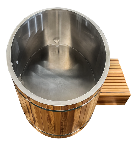 Luxury Cedar Oval Cold Plunge Tub with Stainless Steel Interior, Dual Covers, Easy Drainage, Steps & Headrest Included