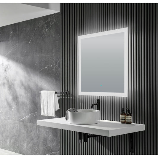 Mars 32 in. x 30 in. Frameless Rectangular LED Bathroom Mirror with Defogger in Silver