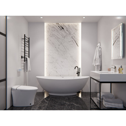 Masoko Series 74 in. x 34 in. Flat Bottom Solid Surface Freestanding Soaking Bathtub with Center Drain in Matte White
