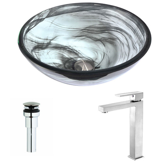 Mezzo Series Deco-Glass Vessel Sink in Slumber Wisp with Fann Faucet in Brushed Nickel