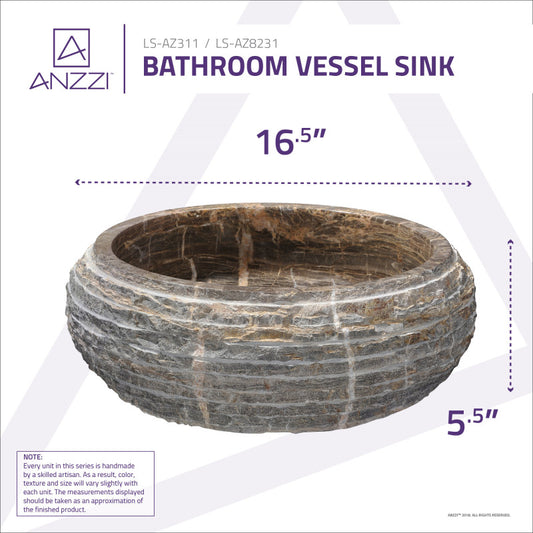 Mirage Ash Natural Stone Vessel Sink in Coffee Marble