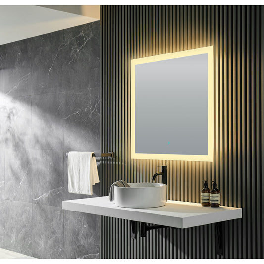 Neptune 39 in. W x 32 in. H Frameless Rectangular LED Bathroom Mirror with Defogger in Silver