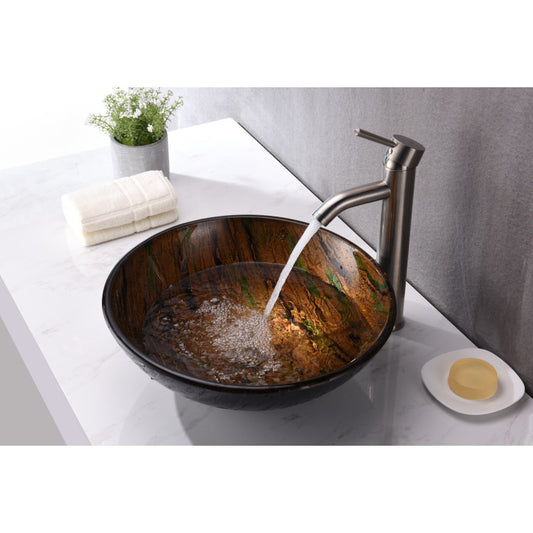 Nile Series 17 in. Bathroom Vessel Sink with Scratch-Tough and Stain-Resistant Non-Porous Surface in Brown Glass