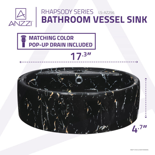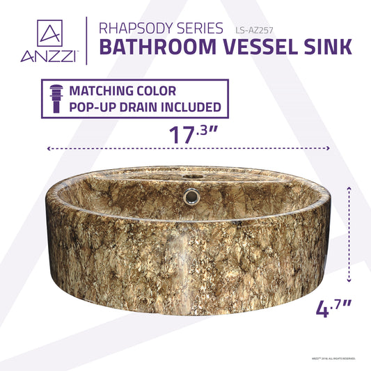 Rhapsody Series 17 in. Bathroom Vessel Sink with Matching Drain and Stain Resistant Surface in Neolith Marble Finish