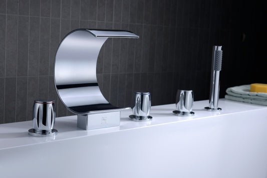 Ribbon 3-Handle Deck-Mount Roman Tub Faucet in Chrome