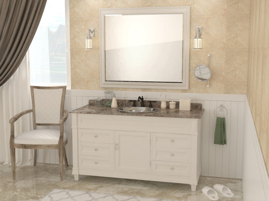 Roccia Series 61 in. x 31 in. Flat Bottom Solid Surface Freestanding Soaking Bathtub with Center Drain in Matte White