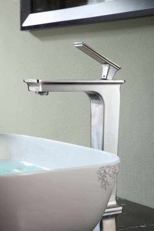 Saunter Single Hole Single-Handle Vessel Bathroom Faucet in Brushed Nickel