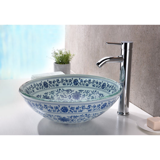 Scepter Series 17 in. Bathroom Vessel Sink with Scratch-Tough and Stain-Resistant Surface in Blue Hammered Glass