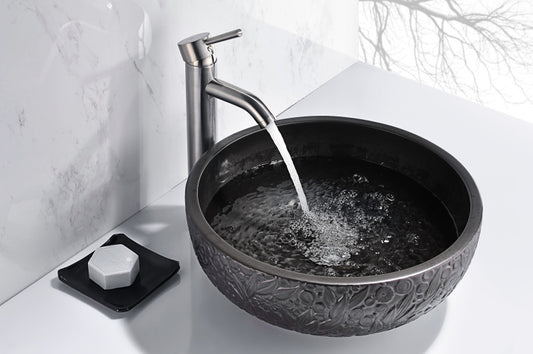 Tale Series Deco-Glass Vessel Sink in Lustrous Green