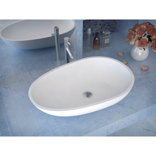 Trident One Piece Solid Surface Vessel Sink in Matte White