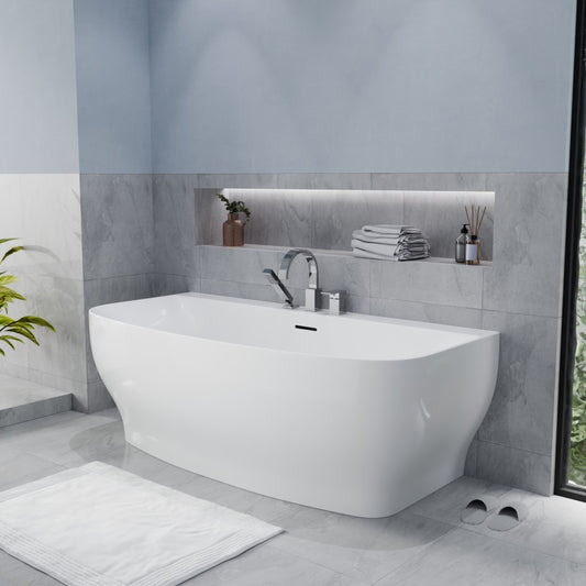 Ami Series 67 in. x 30 in. Flat Bottom Acrylic Freestanding 91 Gallon Soaking Bathtub with Center Drain in Glossy White