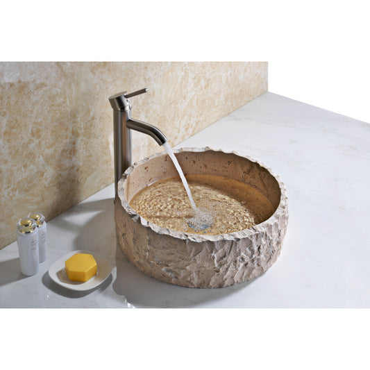 Desert Crown Series 17 in. L x 17 in. W Handcrafted Round Solid Surface Bathroom Vessel Sink in Cream Natural Stone