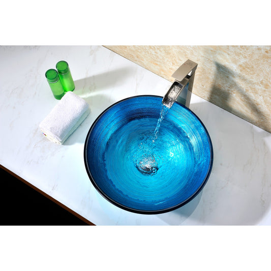 Taba Series Deco-Glass Vessel Sink in Lustrous Blue