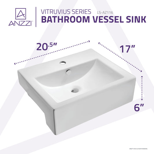 Vitruvius Series 21 in. Rectangular Bathroom Vessel Sink with Built-In Overflow in Glossy White Vitreous China Ceramic