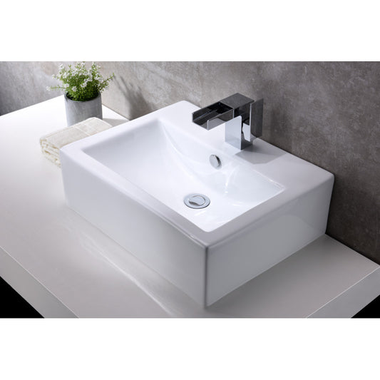 Vitruvius Series 21 in. L x 16 in. W Deck Mount Rectangular Non-Porous Bathroom Vessel Sink in Glossy White Ceramic