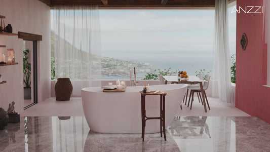 Cielo 6.5 ft. Solid Surface Center Drain Freestanding Bathtub in Matte White
