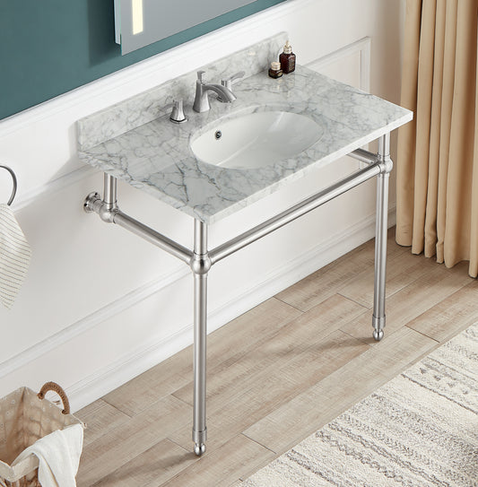 Verona 34.5 in. Console Sink with Carrara White Counter Top