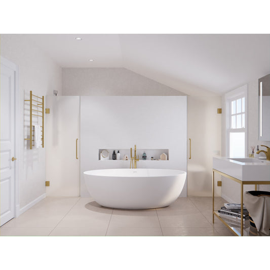 Roccia Series 61 in. x 31 in. Flat Bottom Solid Surface Freestanding Soaking Bathtub with Center Drain in Matte White
