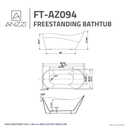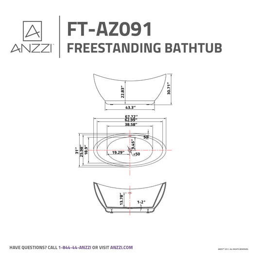 Zenith Series 5.58 ft. Freestanding Bathtub in White