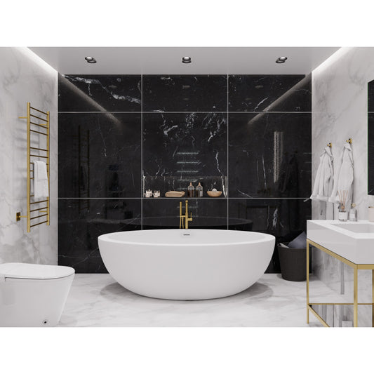 Rossetto Series 67 in. x 28 in. Flat Bottom Solid Surface Freestanding Soaking Bathtub with Center Drain in Matte White