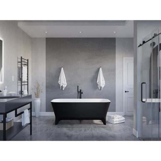 Chand Series 59 in. x 30 in. Flat Bottom Acrylic Freestanding Soaking Bathtub with Center Drain in Glossy Black