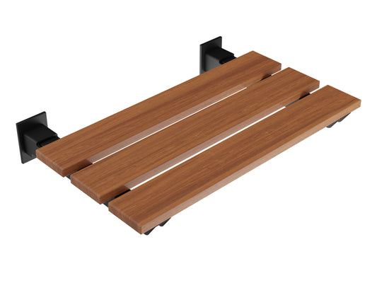 Bohemian 18.7 in. Teak Wall Mounted Folding Shower Seat in Matte Black