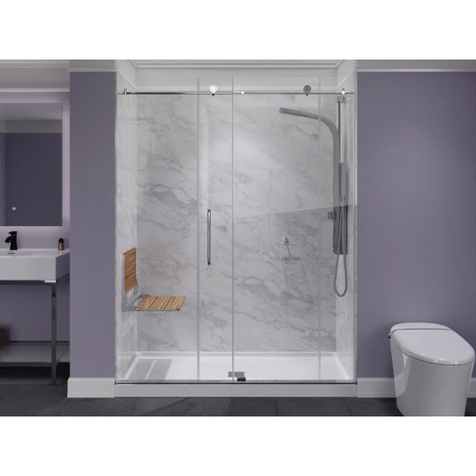 Two Person 35 in. Teak Wood Wall Mounted Folder Shower Seat in Chrome Trim