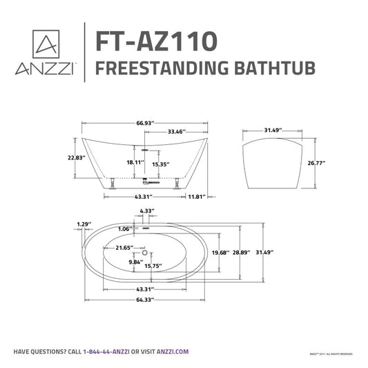 Dover 5.6 ft. Acrylic Center Drain Freestanding Bathtub in Glossy White
