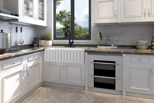 Roine Farmhouse Reversible Apron Front Solid Surface 33 in. Single Basin Kitchen Sink in White