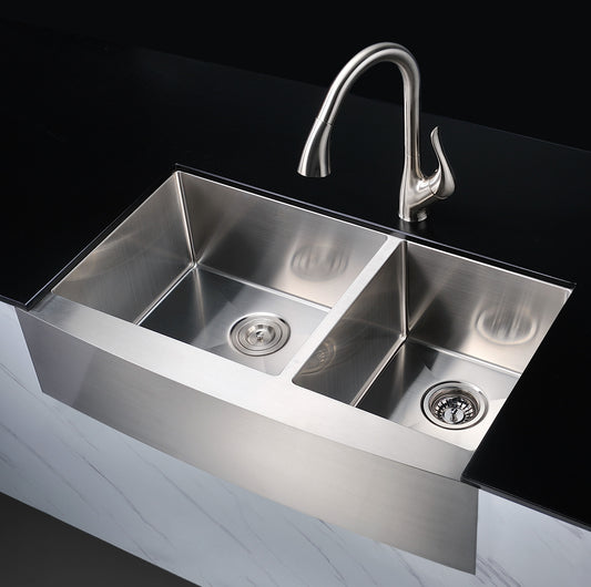 ELYSIAN Series 36 in. Farm House 40/60 Dual Basin Handmade Stainless Steel Kitchen Sink