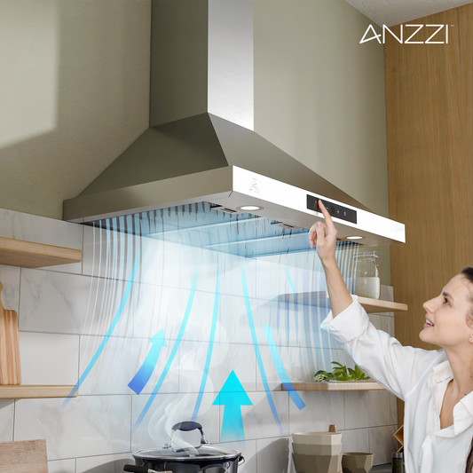 ANZZI 30-Inch 450 CFM 3-Speed Stainless Steel Wall Mount Convertible Pyramid Residential Range Hood with LED Lamp