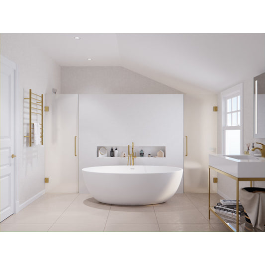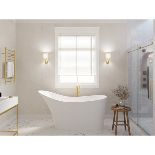 Kosima Series 67 in. x 28 in. Flat Bottom Solid Surface Freestanding Soaking Bathtub with Center Drain in Matte White
