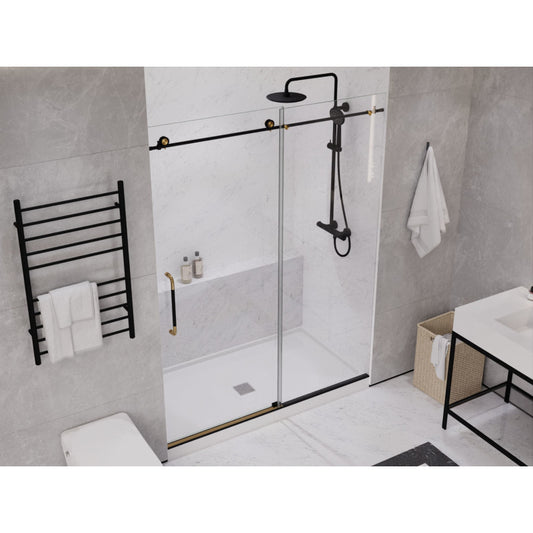 Madam Series 76-in. x 60-in. Frameless Sliding Shower Door in Matte Black and Brushed Gold