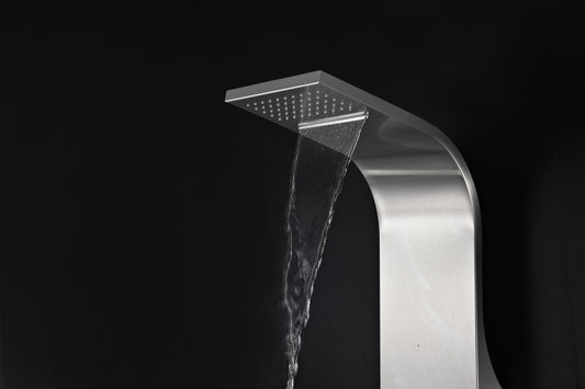 Fontan 64 in. 6-Jetted Full Body Shower Panel with Heavy Rain Shower and Spray Wand in Brushed Steel