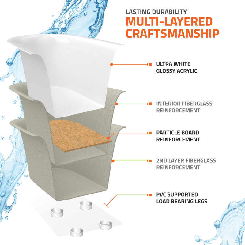 Eros collection features luxuriously designed corner bathtubs, with a traditional oval interior. Molded floor pattern prevents bathers from falling, while adding a piquant flavor to the bathtub's design. Lightweight construction makes installation quick and easy. Interior armrests provide luxury and comfort. Creates an elegant, functional centerpiece for your bathroom and the focal point for relaxation. Aesthetically appealing and physically soothing merging both worlds into a triumph of elegance.