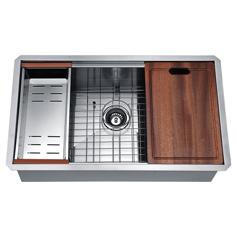 Aegis Undermount Stainless Steel 32.75 in. 0-Hole Single Bowl Kitchen Sink with Cutting Board and Colander
