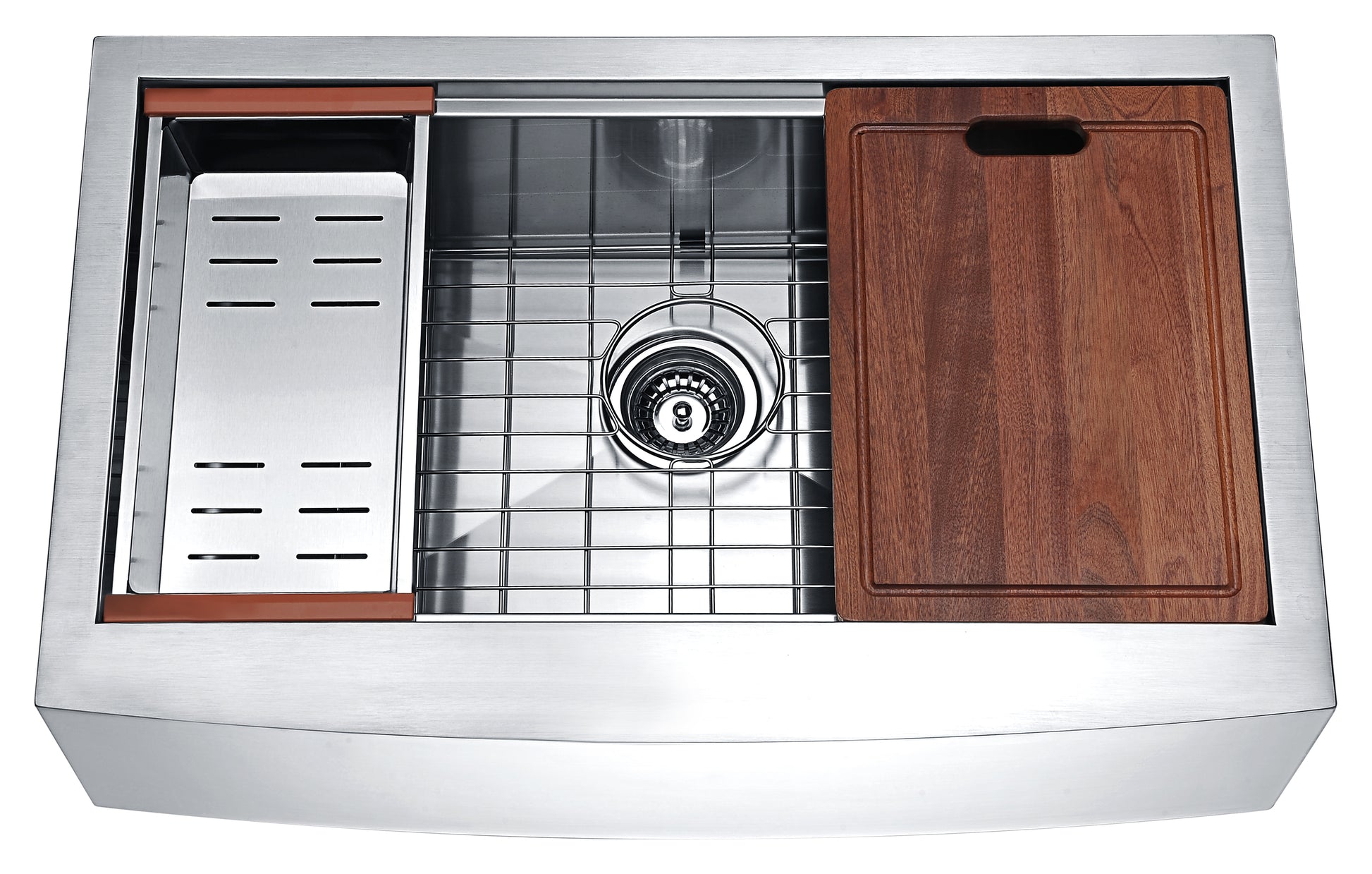 Aegis Farmhouse Stainless Steel 33 in. 0-Hole Single Bowl Kitchen Sink with Cutting Board and Colander