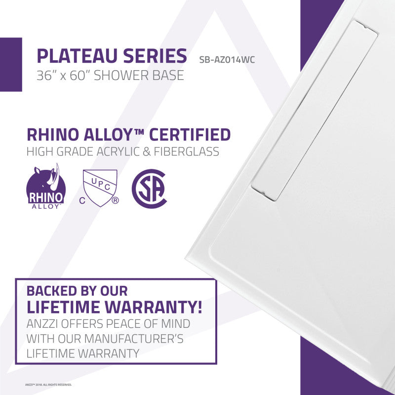 ANZZI is here to offer the perfect foundation for any modern shower enclosure. The ANZZI PLATEAU foundational shower base is crafted using high-end acrylic and molded into a super sturdy contemporary style that will match brilliantly with any of today's most popular decors. The ANZZI PLATEAU is engineered for efficient drainage, elegantly textured for a sure slip-resistant footing and built for long lasting reliability. To take your shower to the next level you must begin with a solid foundation and that is exactly what ANZZI shower bases provide.