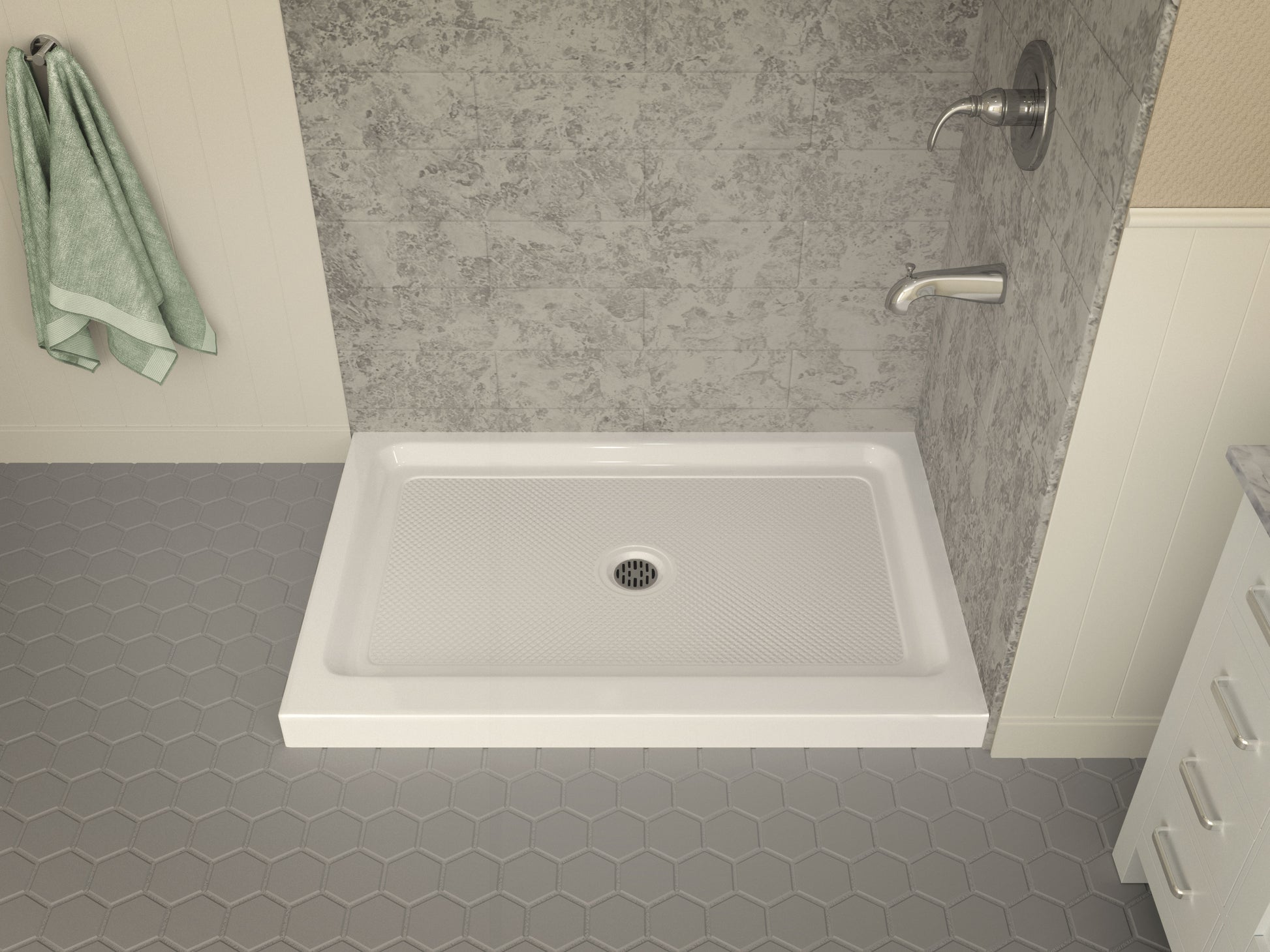 Port Base Series 36 in. L x 48 in. W Corner Shower Shower Pan Base with Center Drain in Glossy White Marine Acrylic