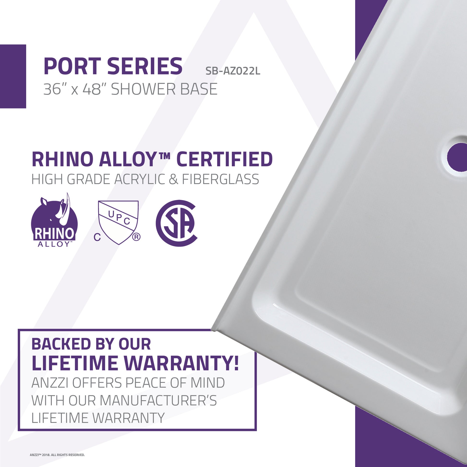 Trust ANZZI to provide the perfect foundation for your new dream shower. ANZZI shower bases are legendary for their durable resilience and high performance reliability. ANZZI craftsman use only RHINO ALLOY certified materials such as marine grade acrylic and high yield fiberglass to deliver a durable and stylish shower base unit. The glossy evenly coated finish is a striking eye catcher which compliments and enhances any style of bathroom.