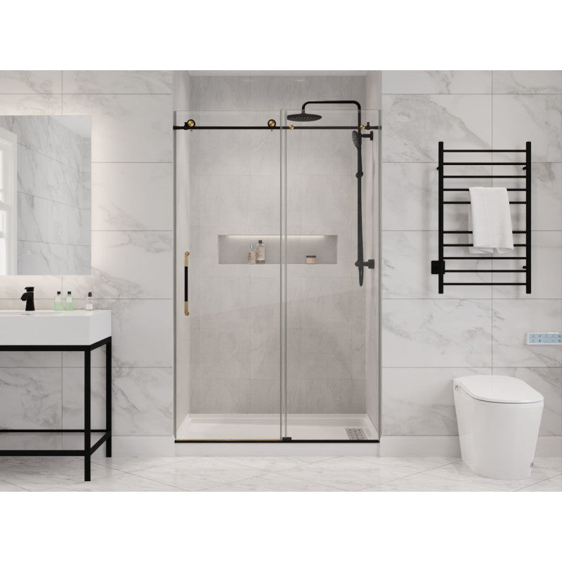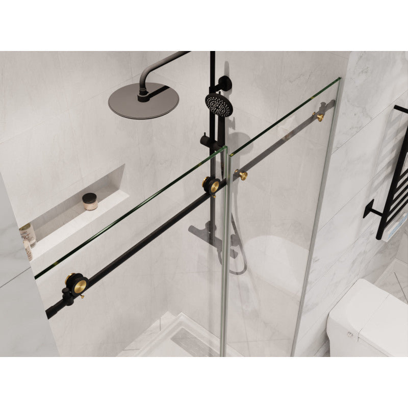 Madam Series 76-in. x 48-in. Frameless Sliding Shower Door in Matte Black and Brushed Gold