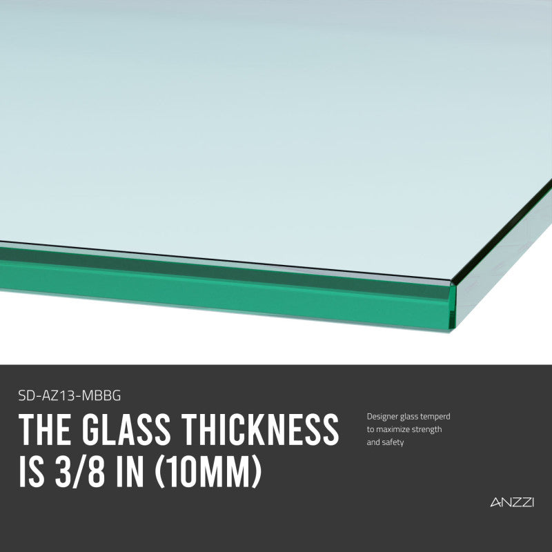 Your bathroom deserves a fantastic new look. Get a great start with this ultra-modern shower door that boasts a chic frameless design complemented by stylish two-tone hardware. It slides effortlessly on Easy Glide rollers that make opening and closing simple. ANSI-certified, tempered glass stays crystal-clear thanks to Tsunami Guard shielding that prevents cloudy build-up. Rhino Alloy-certified frames and hardware have a Matte Black and Brushed Gold finish that stays beautiful year after year.