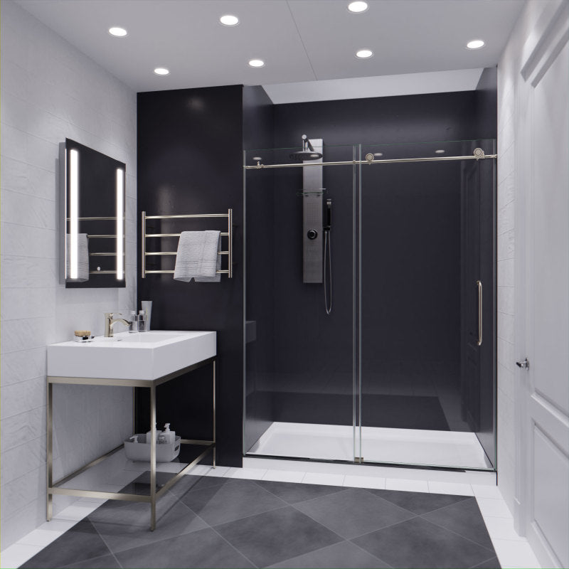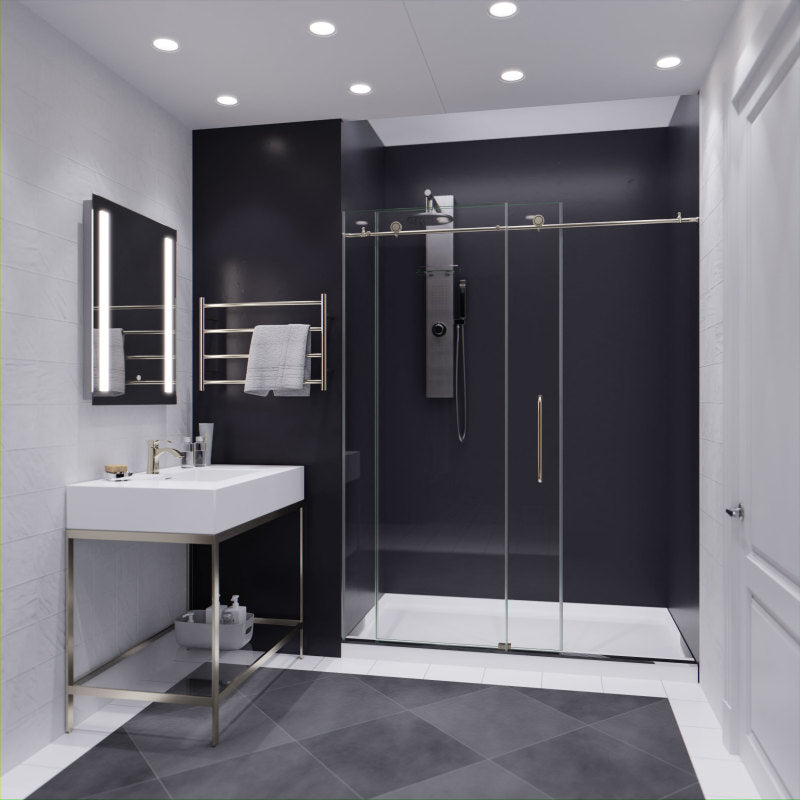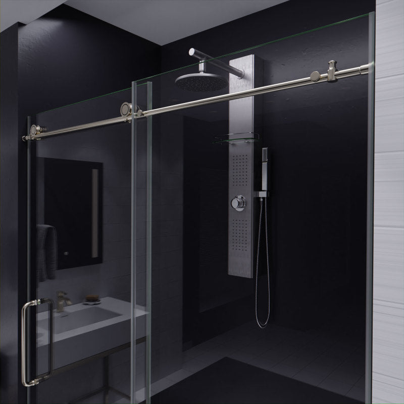 Madam Series 60 in. by 76 in. Frameless Sliding Shower Door in Brushed Nickel with Handle