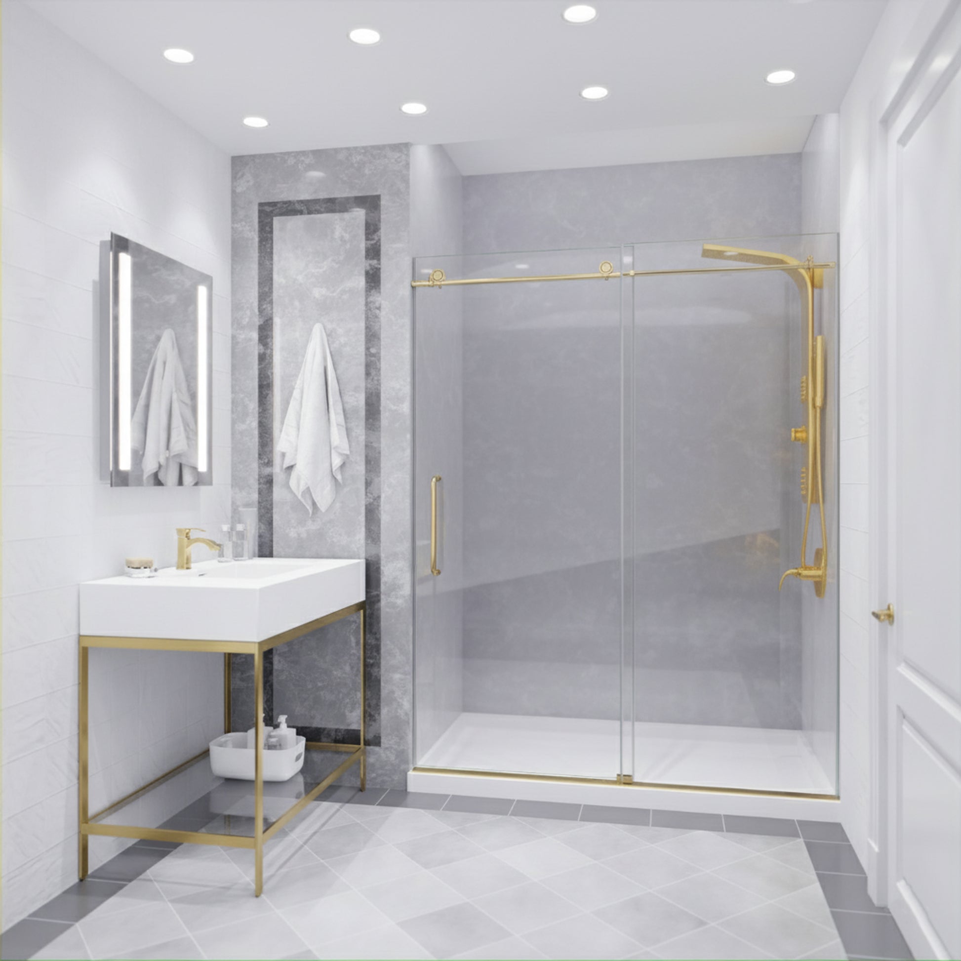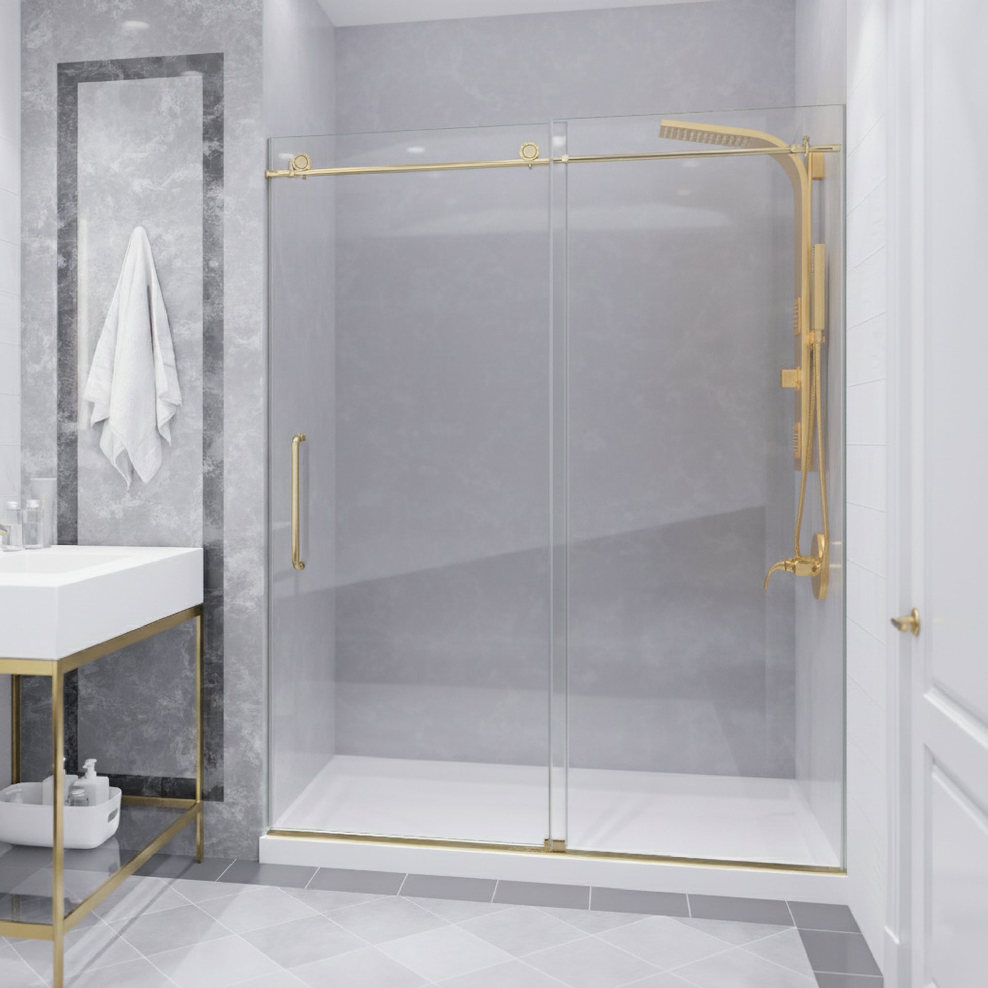 Leon Series 60 in. by 76 in. Frameless Sliding Shower Door with Handle