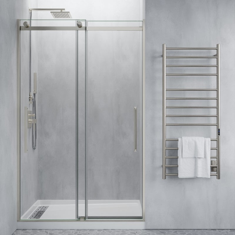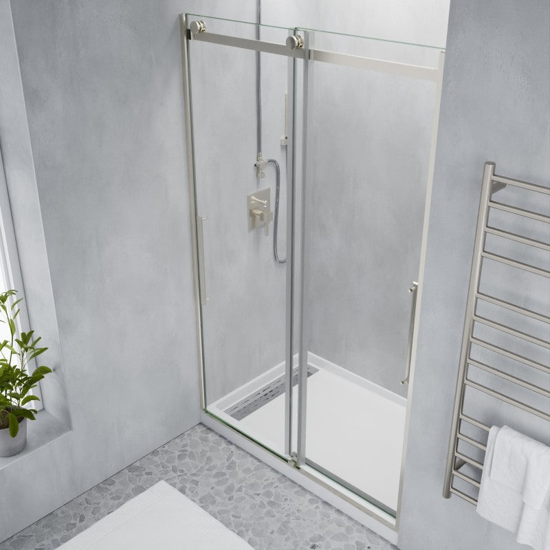 Modernize your shower space with the clean, clutter-free design of a Stellar Series sliding door. We build it with ANSI-certified, tempered Deco-Glass that’s protected by ANZZI's own Tsunami Guard shielding, which repels water so your door stays crystal-clear and free of cloudy build-up. The hardware is crafted from Rhino Alloy-certified stainless steel and aluminum, then finished in Brushed Nickel, giving it the versatility to work with any bathroom’s decor. The contemporary frameless design uses stainless steel rollers to create a free-floating sliding action, so the door opens and closes easily every time.